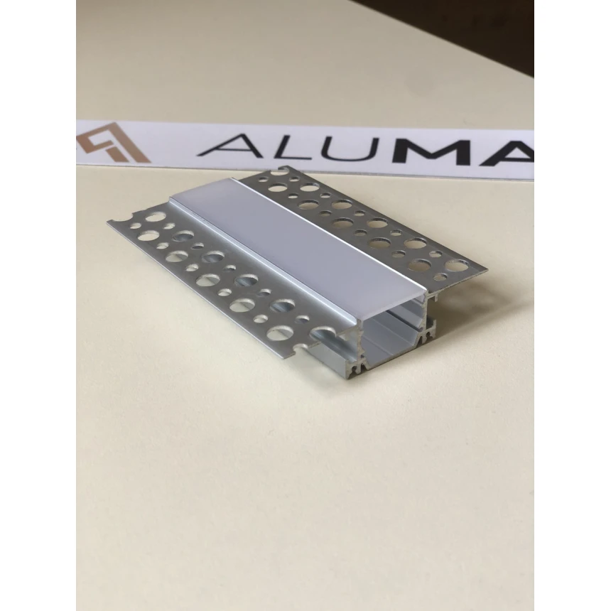 Врізний алюмінієвий профіль для гіпсокартону з LED-каналом 73×33×18,5 мм призначений для створення рівної, виразної лінійної підсвітки у сучасних інтер’єрах. Завдяки врізному монтажу профіль встановлюється врівень із поверхнею гіпсокартону, формуючи чисту архітектурну лінію без виступаючих елементів.
