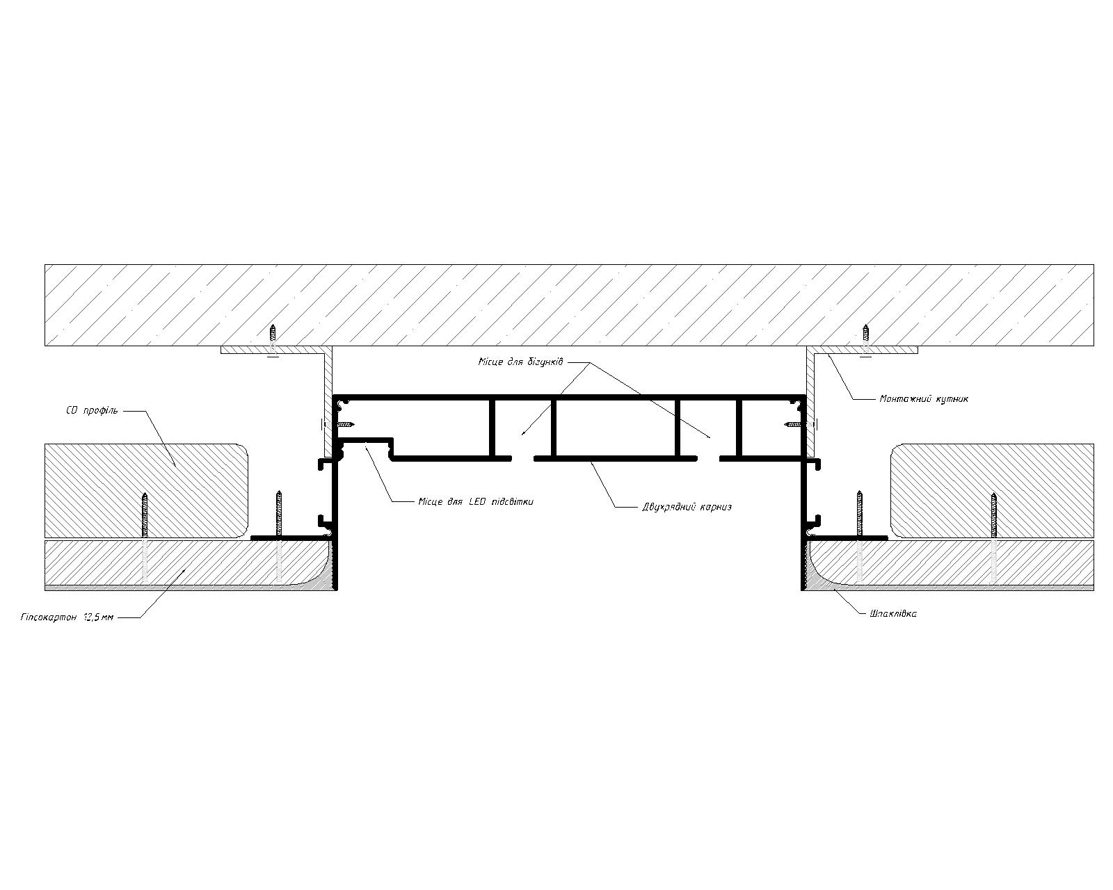 Дворядний карниз прихованого монтажу 172х53 з Led підсвіткою Чорний