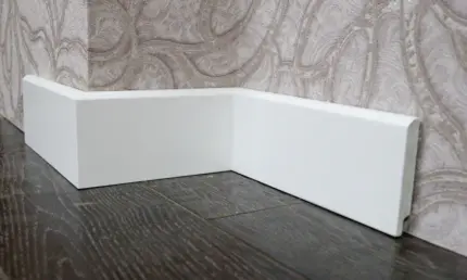 - Практичність — плінтуси стійкі до температурних перепадів і вологи, легко миються.