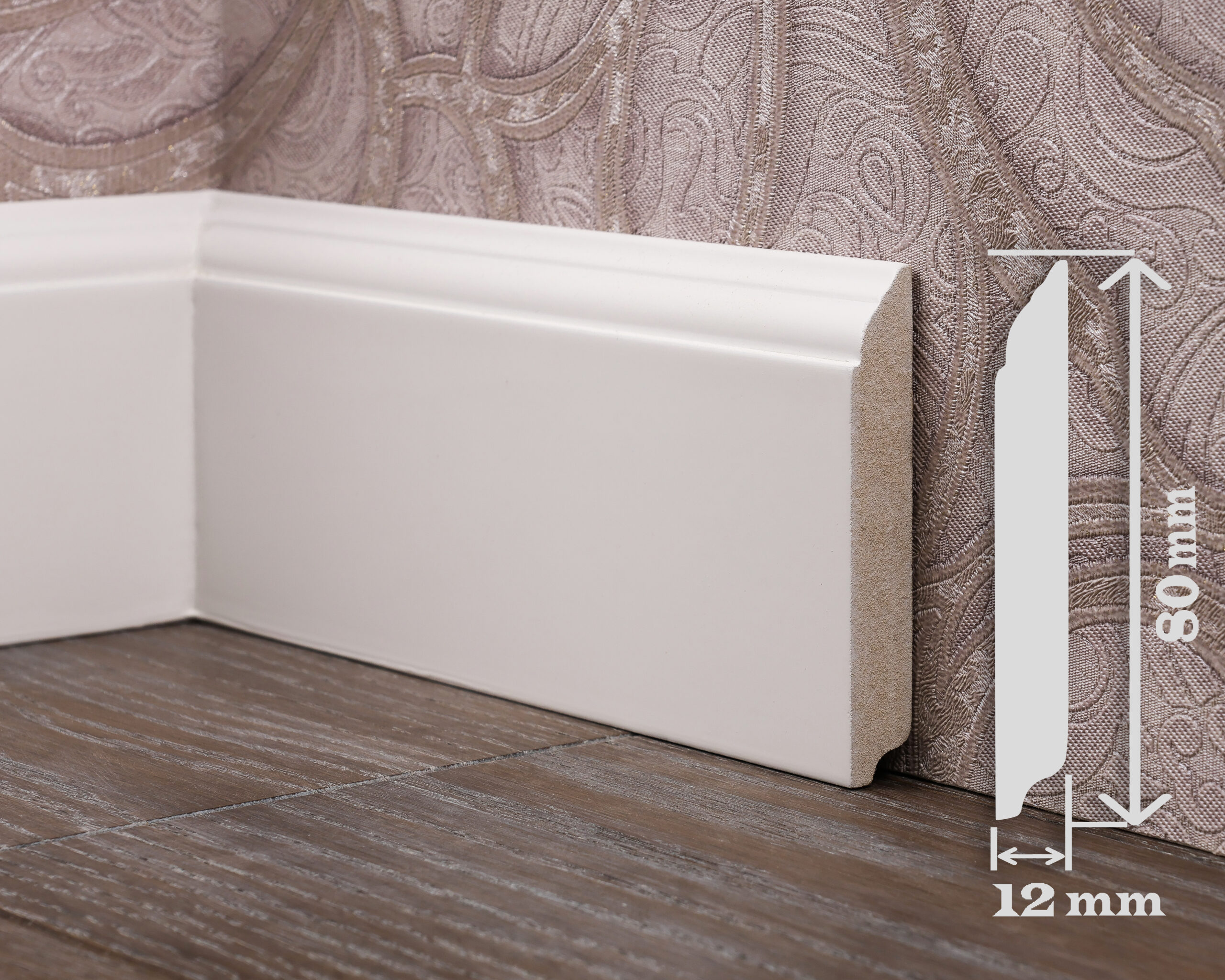 Плінтус Plintmark ПФ-26 — сучасний фарбований плінтус із вологостійкого МДФ, створений для інтер’єрів, де важливі баланс пропорцій та чистота ліній. Висота 80 мм і товщина 12 мм роблять його універсальним рішенням для квартир, будинків і комерційних просторів, забезпечуючи акуратне та виразне завершення примикання підлоги до стіни.