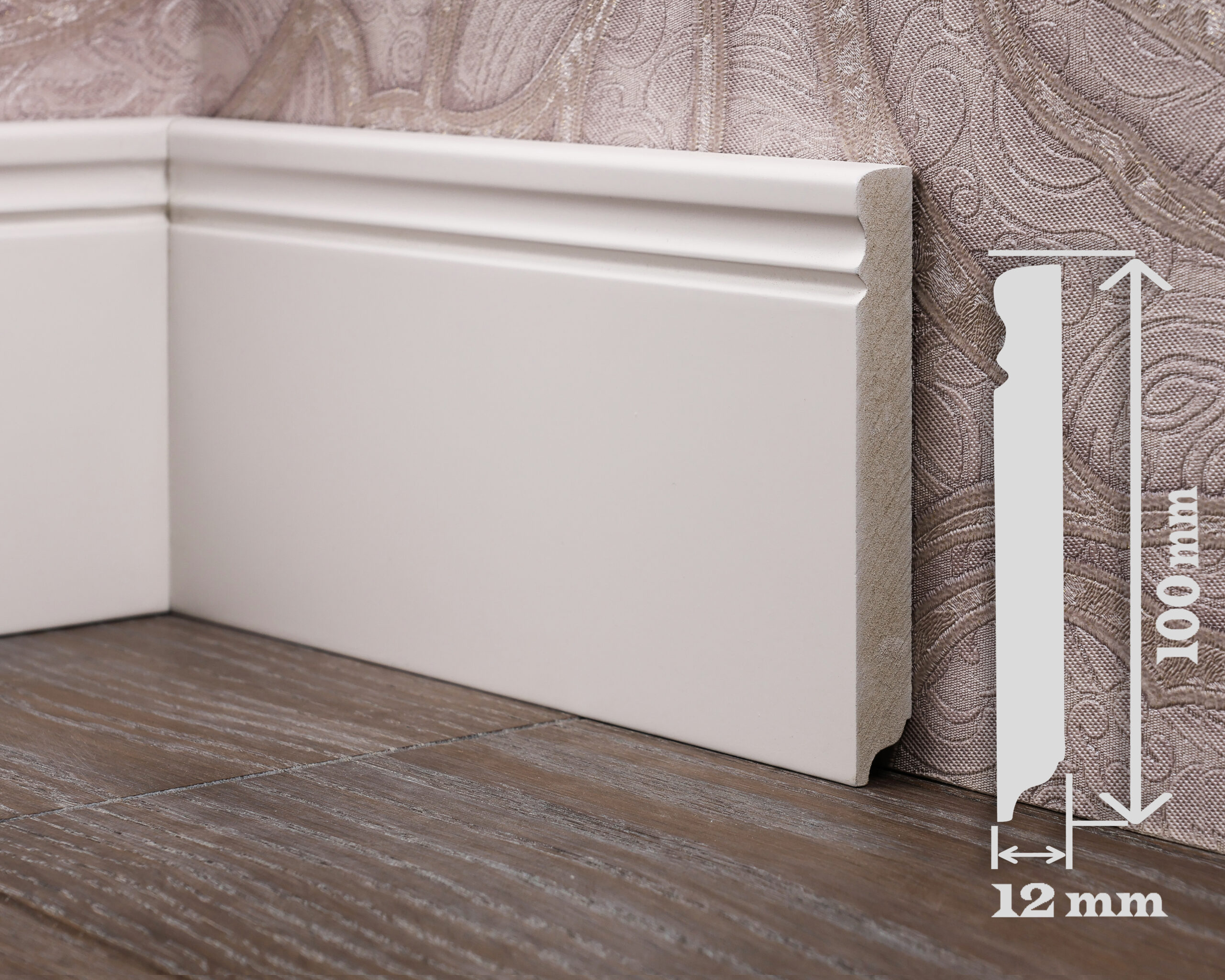 Плінтус МДФ прямий білий 100х12х2000 Ral 9003