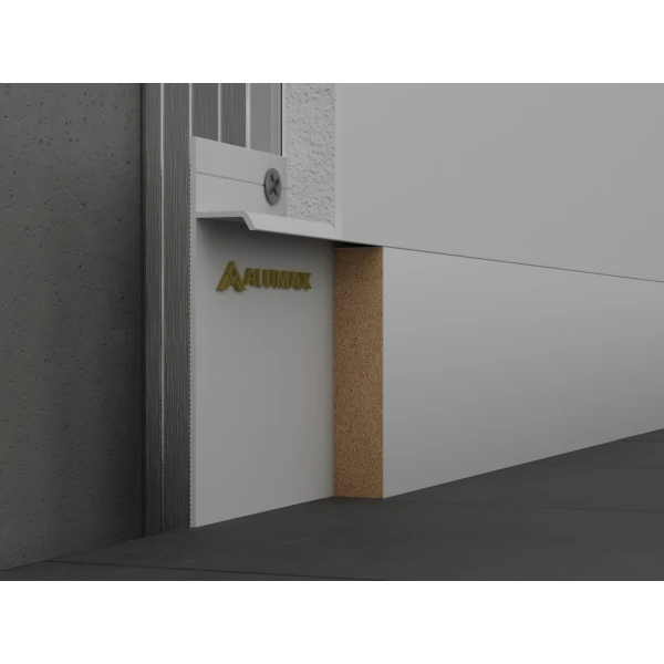 Прихований алюмінієвий плінтус заввишки 60 мм придасть оригінальності будь-якому інтер’єру, є незамінним при використанні дверей прихованого монтажу. Виготовлюється планкою довжиною 2600 мм.