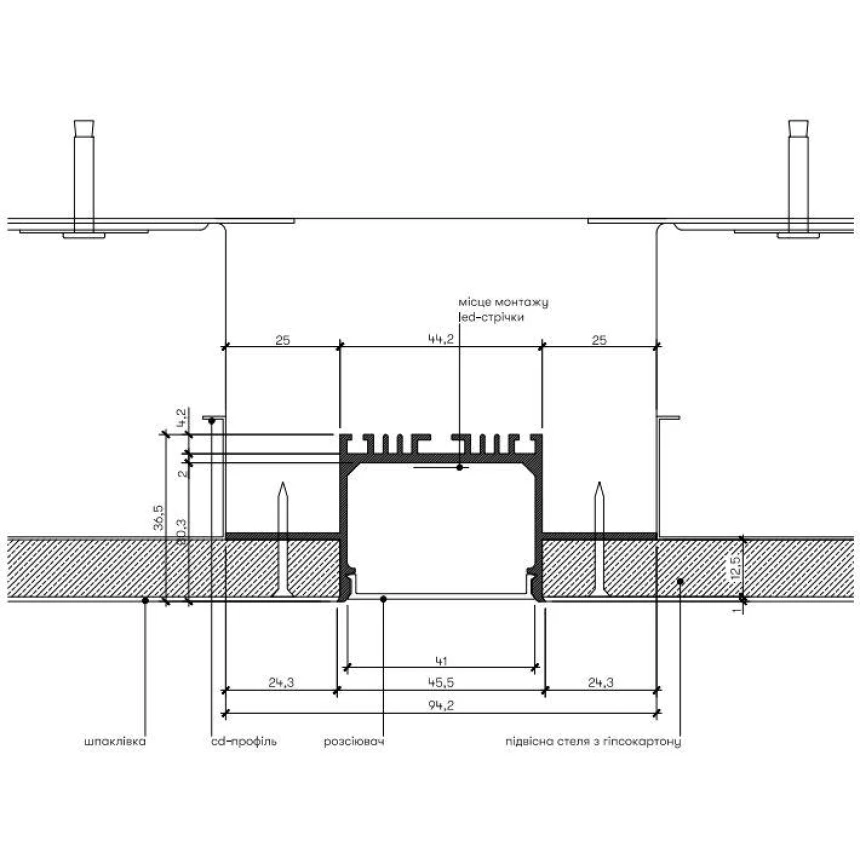 Алюмінієвий профіль для лінійної LED-підсвітки 41 мм. Для створення яскравого та рівномірного лінійного освітлення в інтер’єрі.